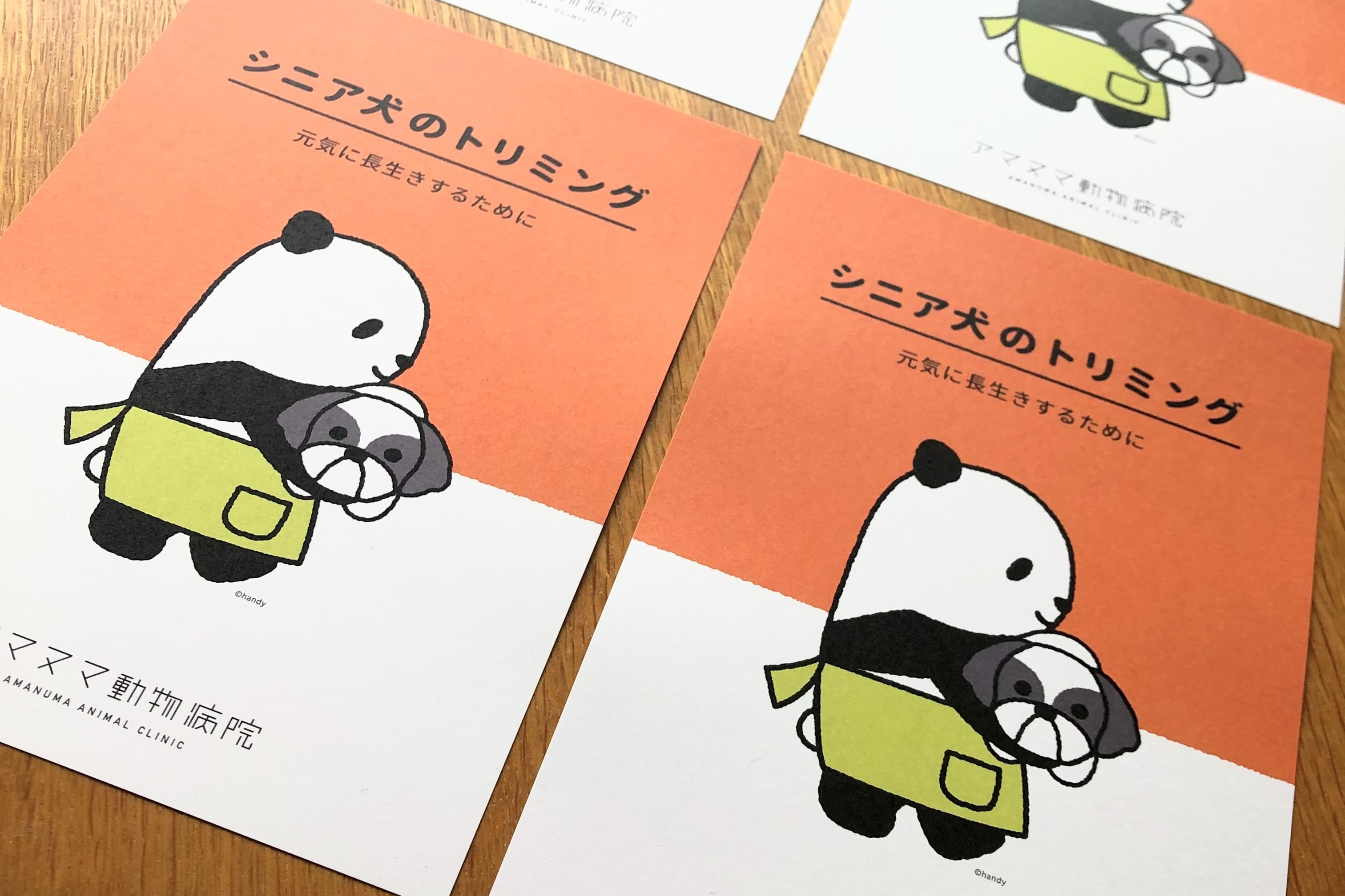 ボクがトリマーさんになったんだ。おじいちゃん犬をだっこしてるよ。くわしくみたい人はhandyのページにいってね。(2021/9)